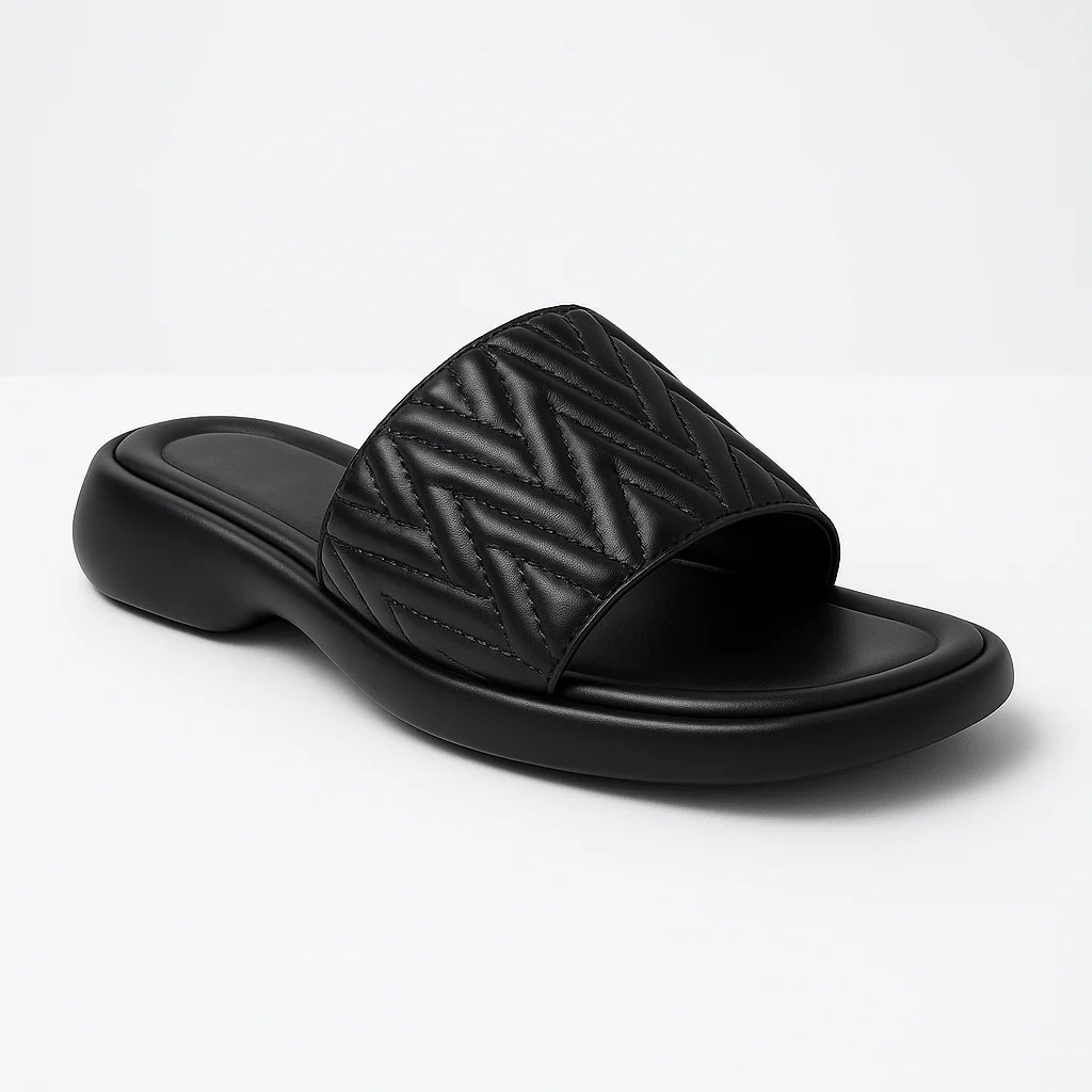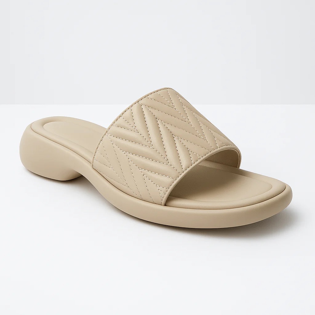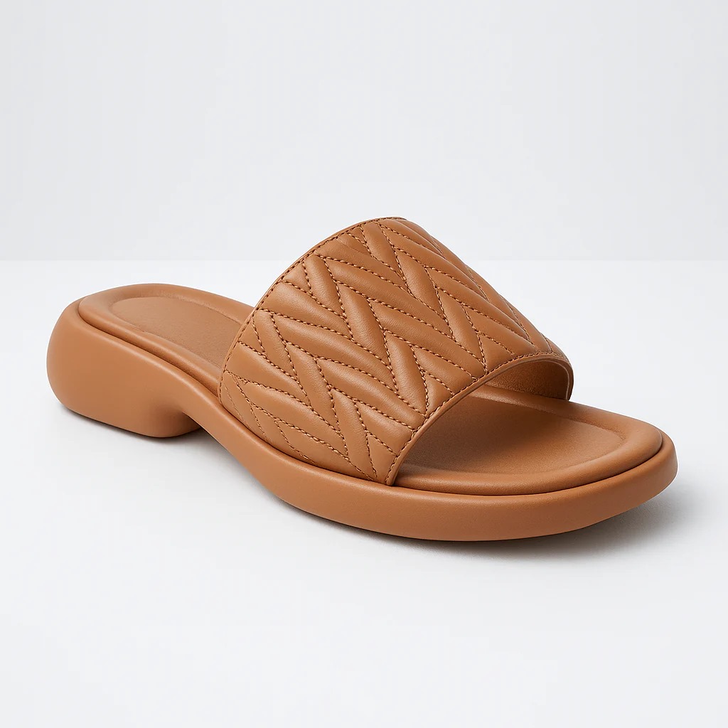 Step into everyday comfort with Amber Ease Slides, crafted in a warm amber tone with a modern quilted strap. Their cushioned sole and sleek design make them a versatile pick for effortless, casual style.