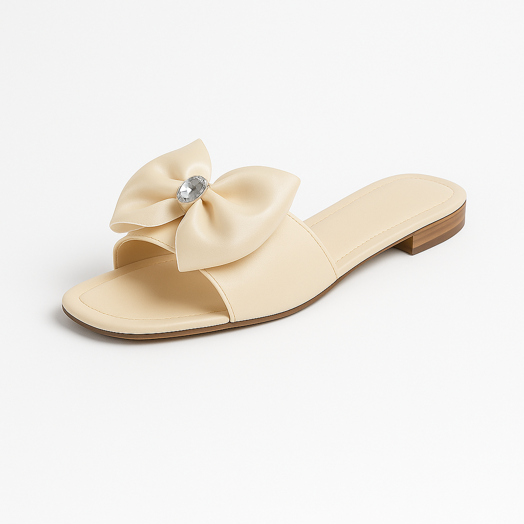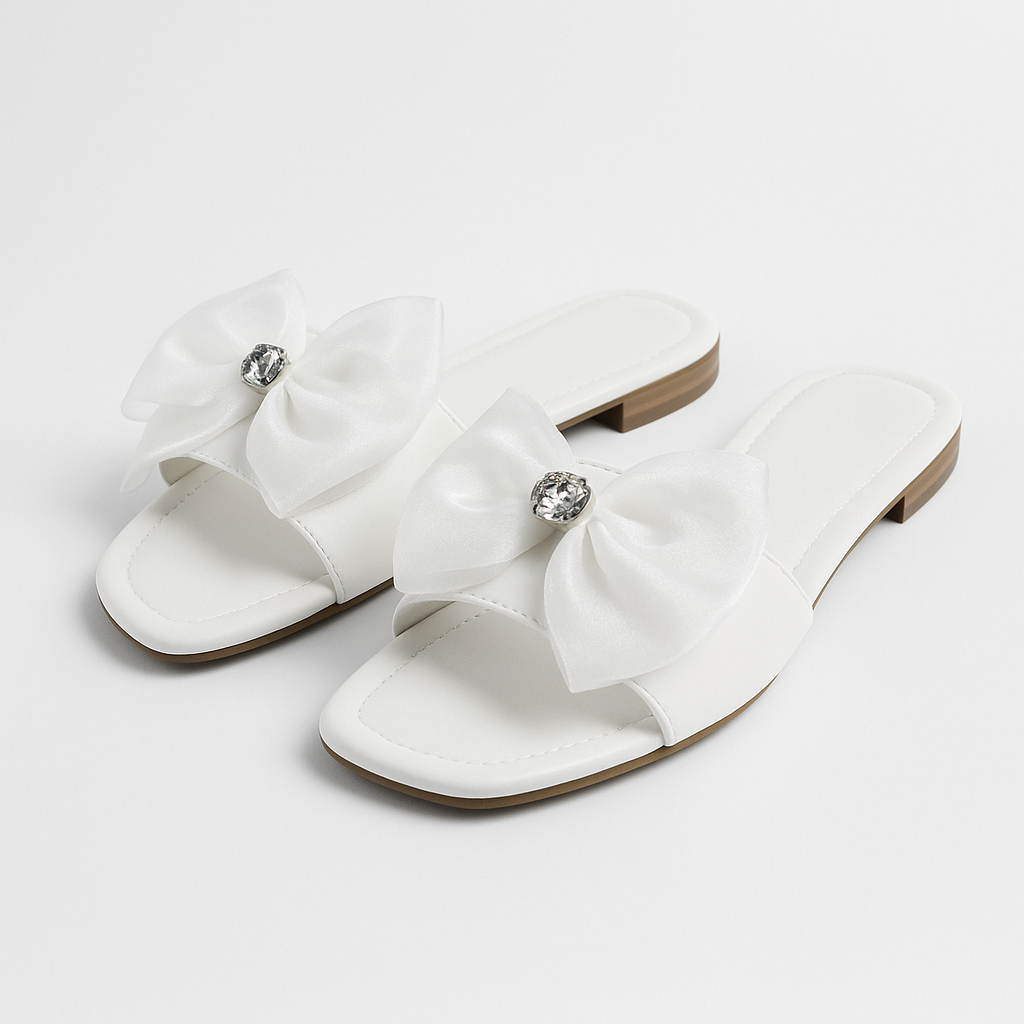 Step into elegance with Crystal Bloom, a pair of white satin slide sandals designed to make every moment feel special. The oversized bow detail, accented with a sparkling crystal centerpiece, creates a graceful yet modern statement. Perfect for bridal wear, parties, or elevating everyday looks.